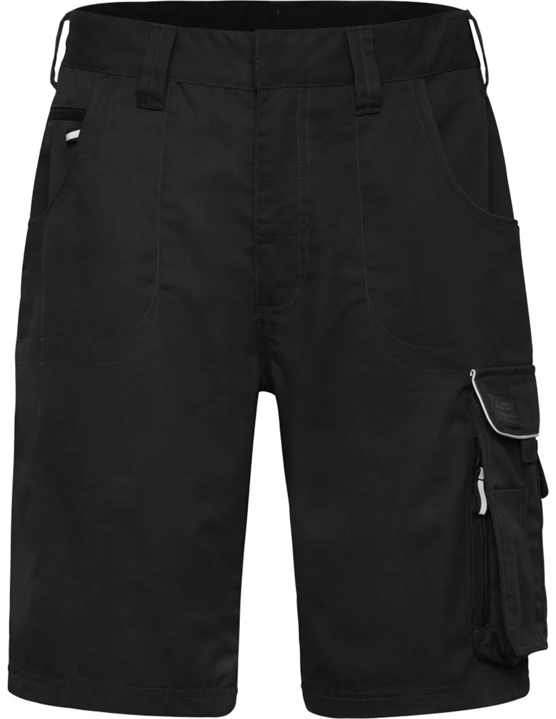 Moške delovne kratke hlače imajo elastičen pas, skrite gumbe in zadrge, vstavljive žepe, 2 žepa z zadrgo, žep za ravnilo in žep za mobilni telefon.