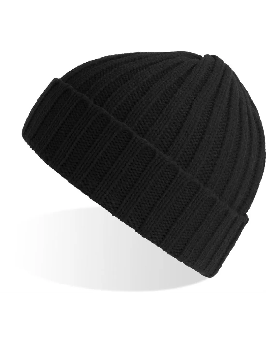 Pletena kapa Shore z zavihkom, v grobem rebrastem pletenju.